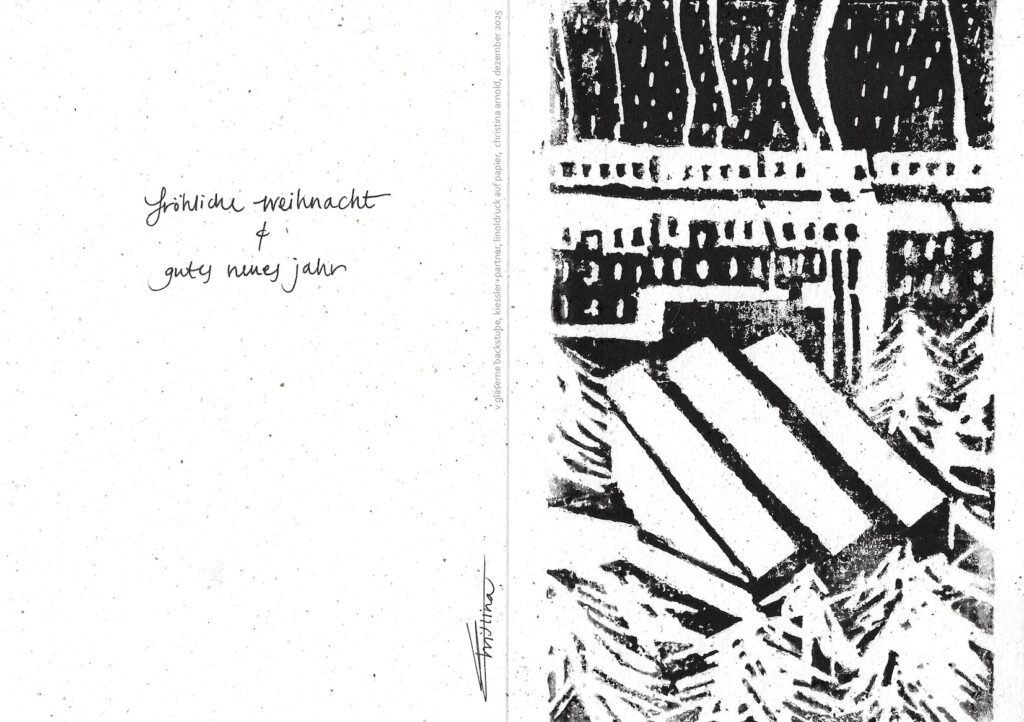 Christina Arnold, Gläserne Backstube, Linoldruck auf Papier, Dezember 2025